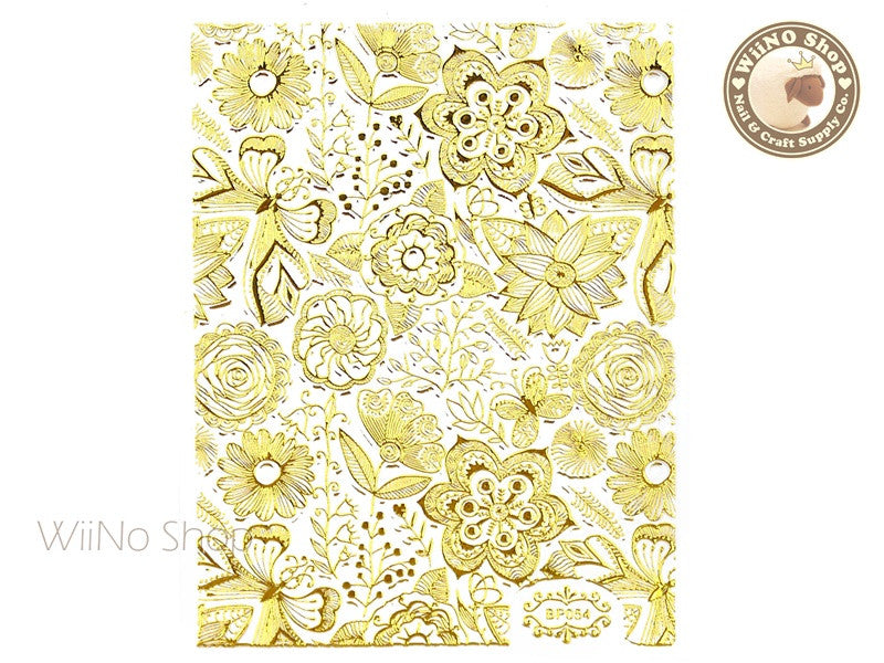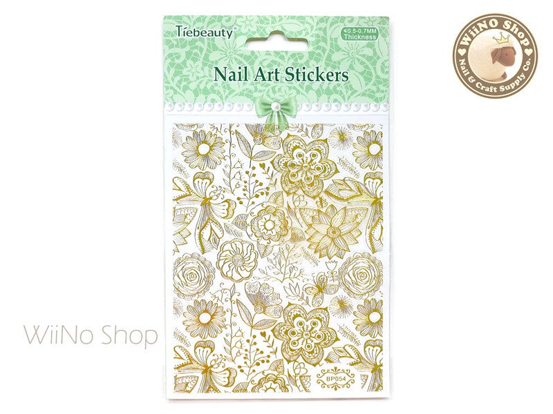 Gold Floral Pattern Adhesive Nail Art Sticker - 1 pc (BP054G)