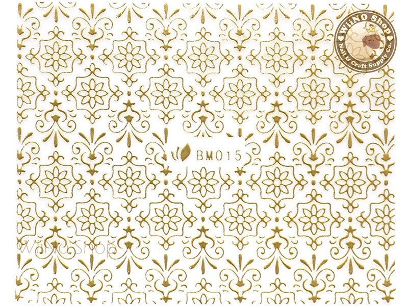 Gold Floral Pattern Adhesive Nail Sticker Nail Art - 1 pc (BM015G)