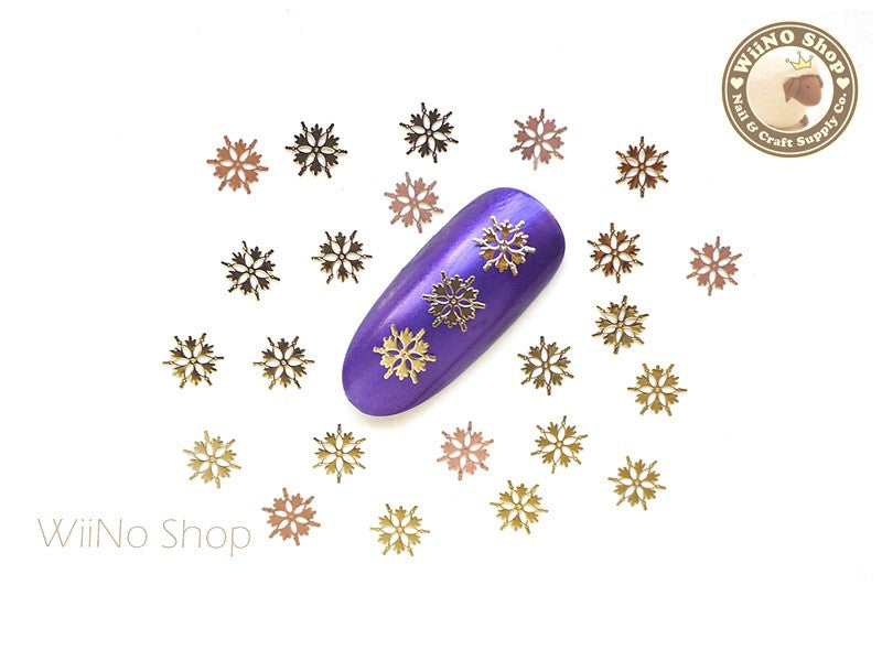 Gold Floral Snowflake Ultra Thin Nail Art Metal Decoration - 25 pcs
