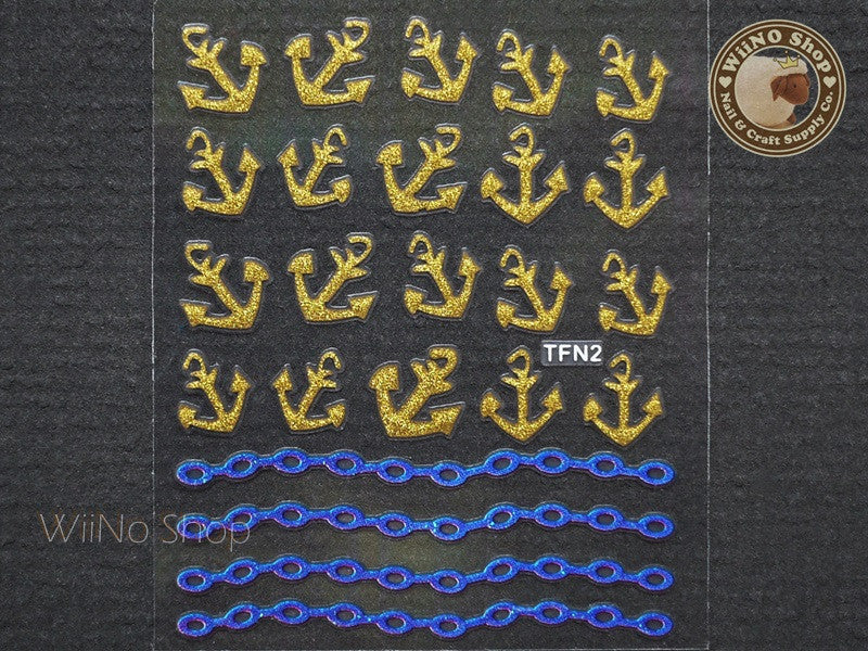 Gold Glitter Anchor Blue Chain Adhesive Nail Sticker Nail Art - 1 pc (TFN2)