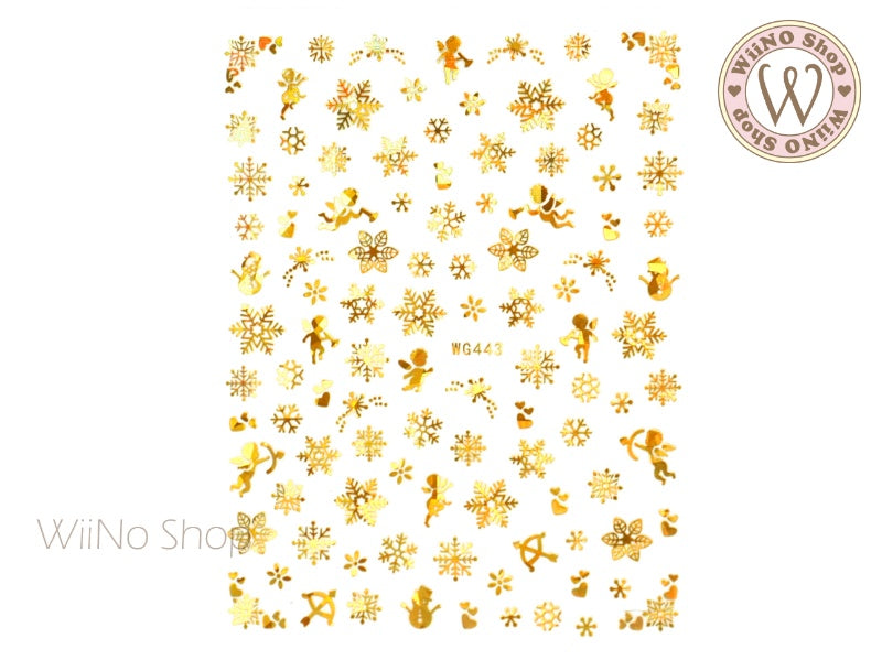Angel Snowflake Gold Holographic Adhesive Nail Art Sticker - 1 pc (WG443GH)
