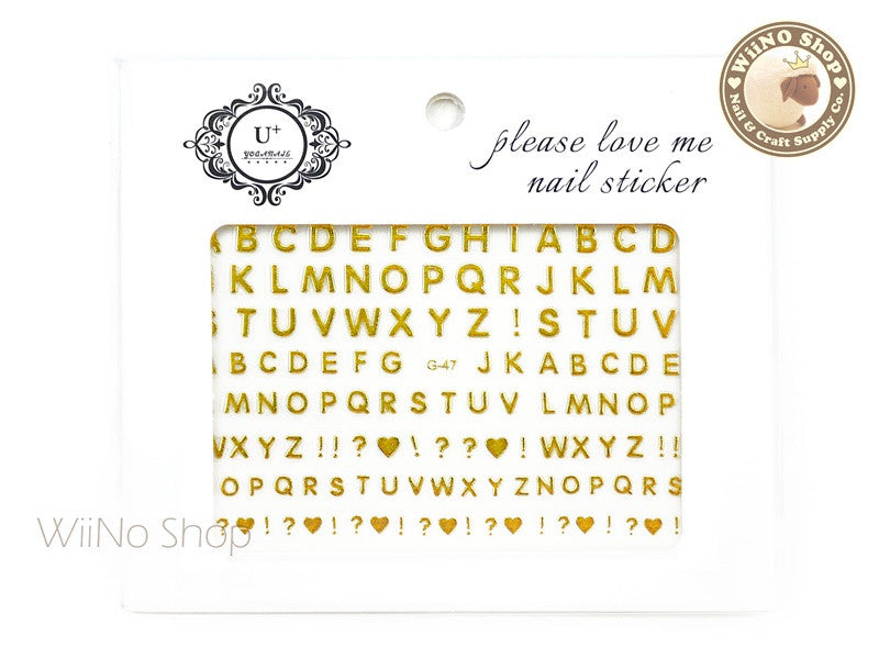 Gold Letters Adhesive Nail Art Sticker - 1 pc (G-47)