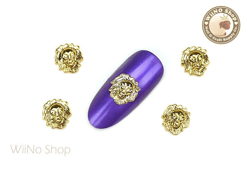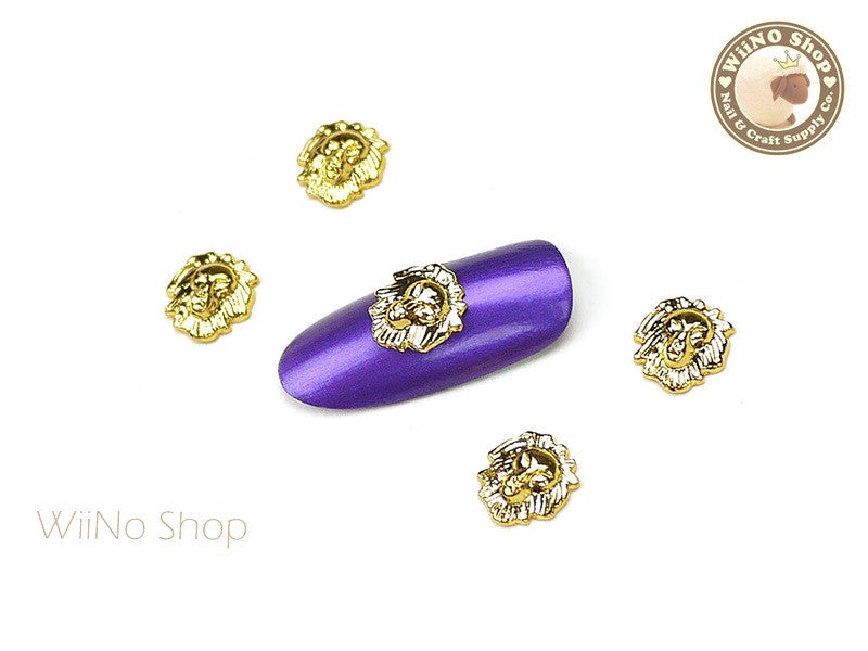 Gold Lion Head Nail Metal Charm - 2 pcs