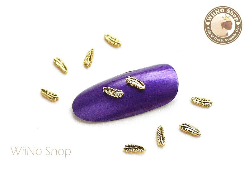 Gold Mini Feather Nail Metal Charm - 2 pcs (FT04G)