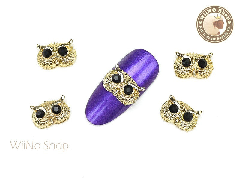 Gold Owl Head Nail Metal Charm Nail Art - 2 pcs