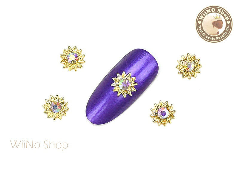 Gold Pattern Sun with AB Clear Crystal Nail Art Metal Charm - 2 pcs