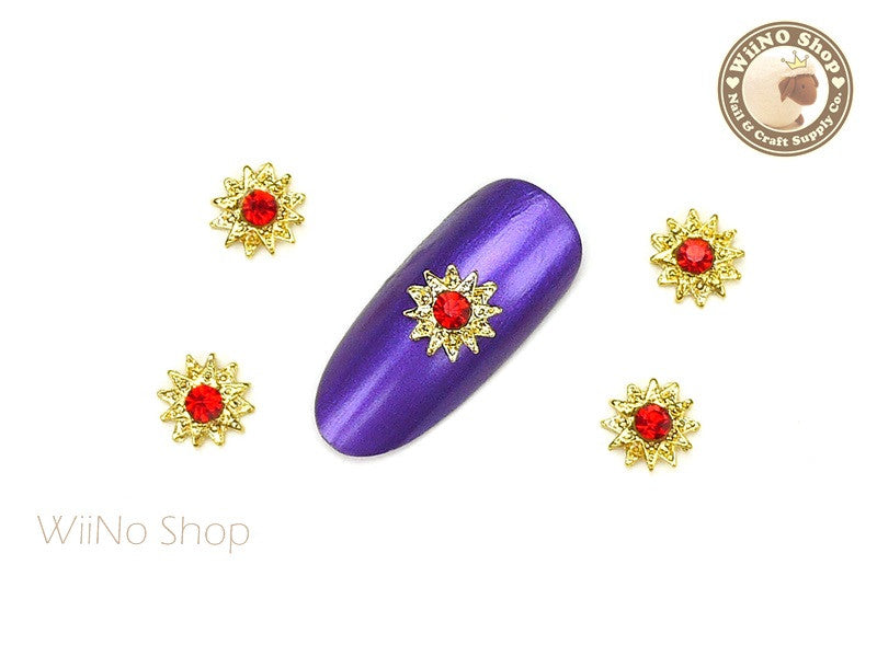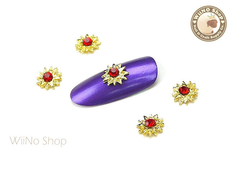 Gold Pattern Sun with Red Crystal Nail Art Metal Charm - 2 pcs