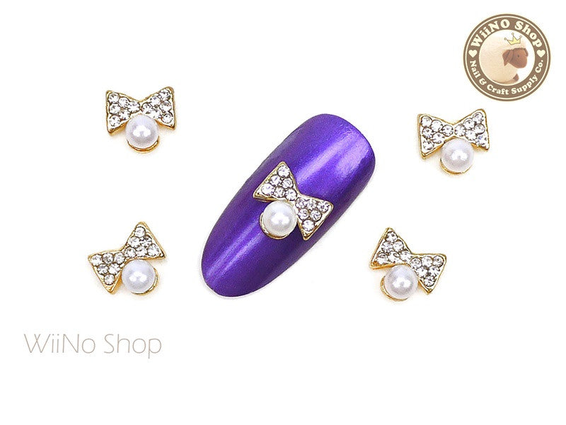 Gold Pearl Crystal Bow Nail Metal Charm - 2 pcs