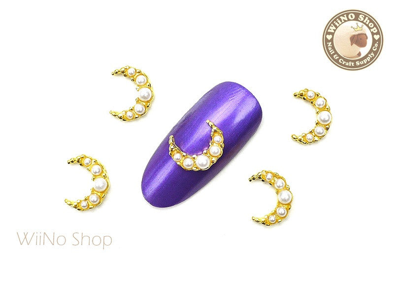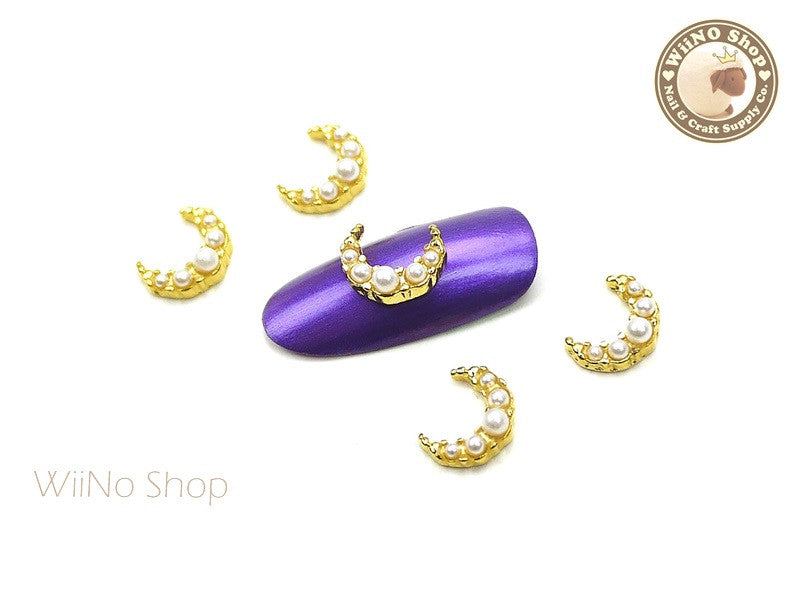 Gold Pearl Moon Nail Art Metal Charm - 2 pcs