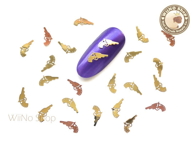 Gold Pistol Gun Ultra Thin Nail Art Metal Decoration - 25 pcs