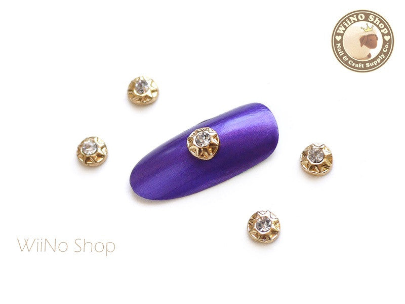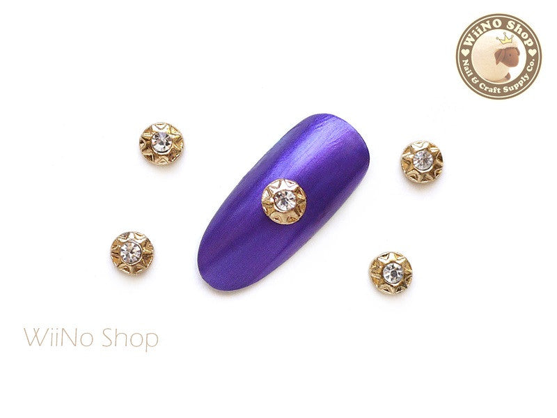 Gold Round Star Pattern with Crystal Nail Metal Charm - 2 pcs