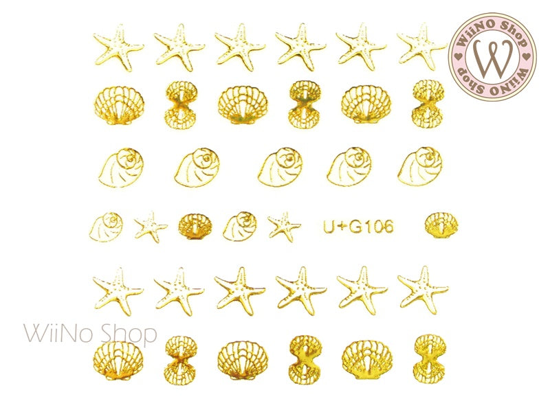 Gold Seashell Starfish Adhesive Nail Art Sticker - 1 pc (U+G106)