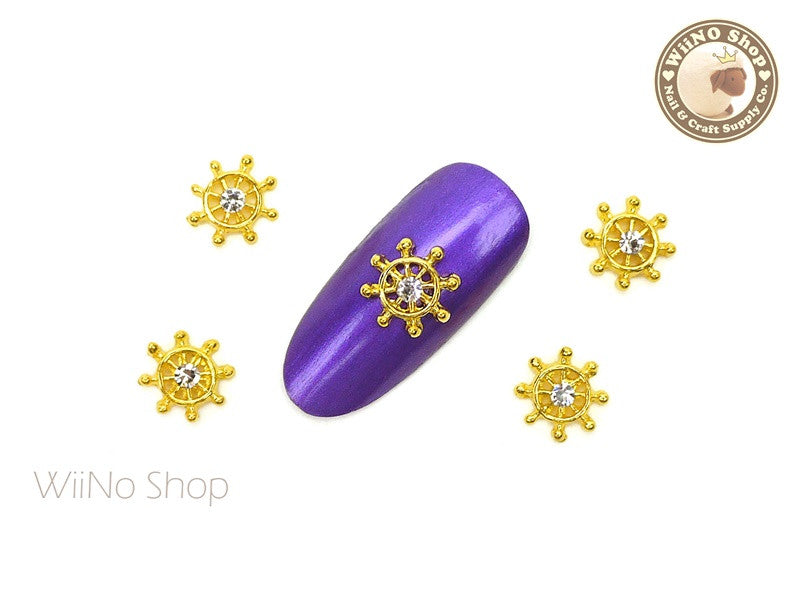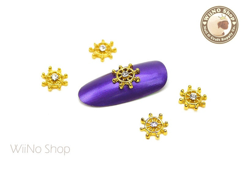 Gold Ship Wheel with Crystal Nail Metal Charm - 2 pcs
