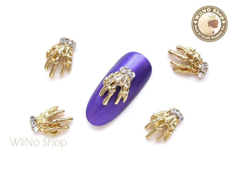 Gold Skeleton Hand Nail Metal Charm - 2 pcs