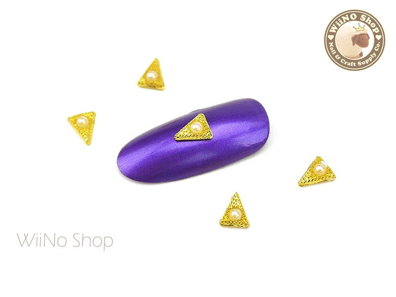 Gold Skinny Triangle with Pearl Nail Metal Charm - 2 pcs