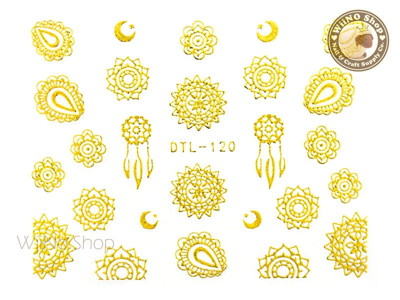 Gold Sun & Moon Tribal Adhesive Nail Art Sticker - 1 pc (DTL-120G)