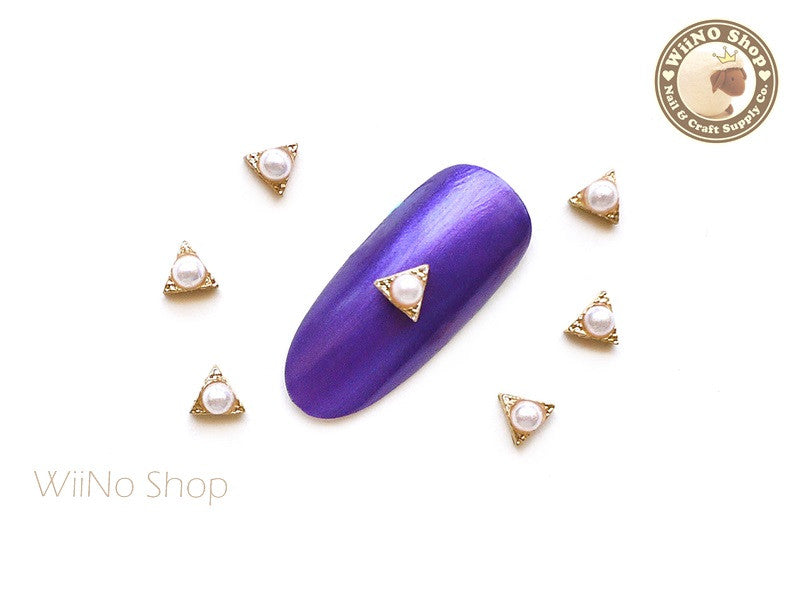 Gold Triangle with Pearl Nail Art Metal Charm - 2 pcs