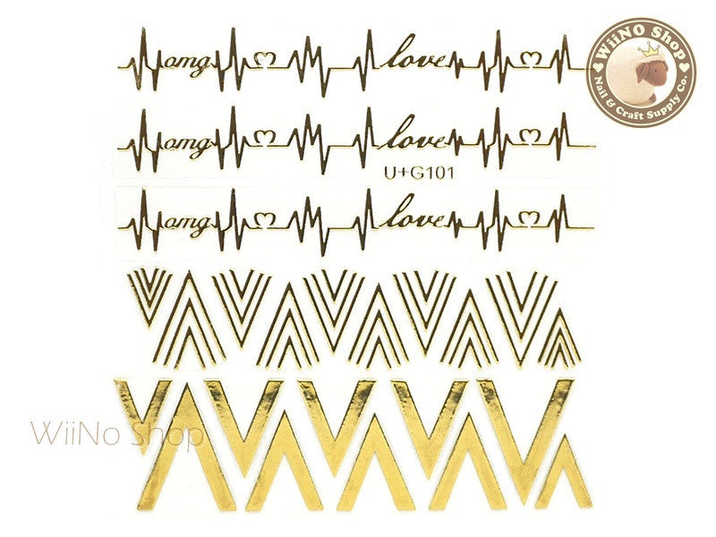 Gold V Heartbeat Pattern Adhesive Nail Art Sticker - 1 pc (U+G101)
