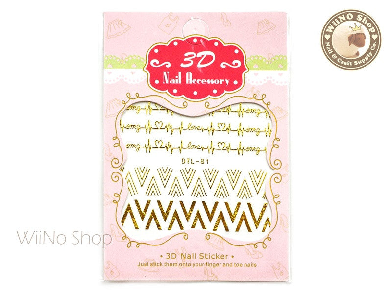 Gold V Heartbeat Pattern Nail Art Sticker - 1 pc (DTL-81G)