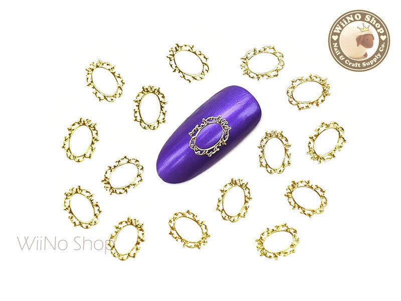 Gold Victorian Oval Frame Ultra Thin Nail Art Metal Decoration - 25 pcs