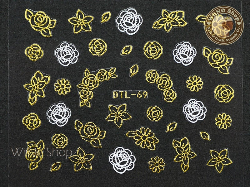 Gold White Flower Nail Art Sticker - 1 pc (DTL-69G)