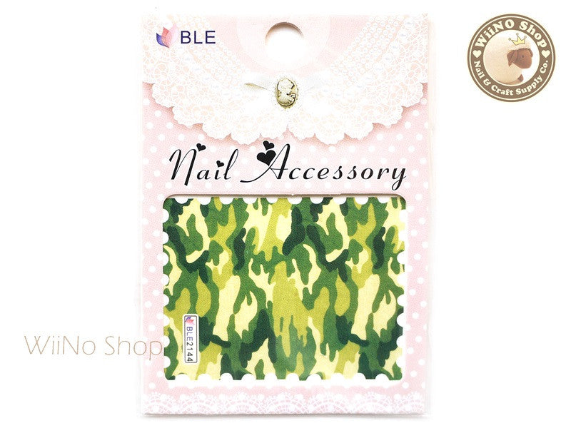 Green Camouflage Pattern Water Slide Nail Art Decals - 1pc (BLE2144)