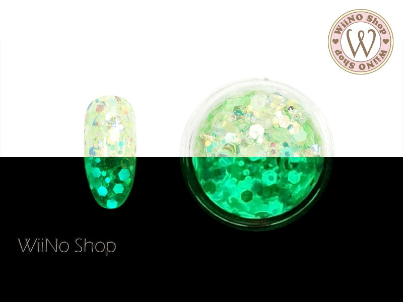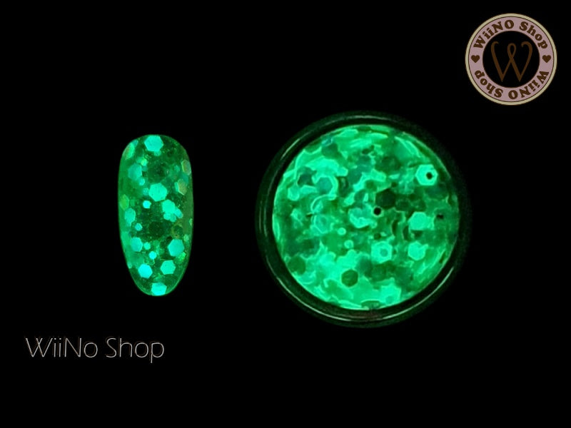 Green Glow in The Dark Hexagon Mix with Glitter Dust (GD04)
