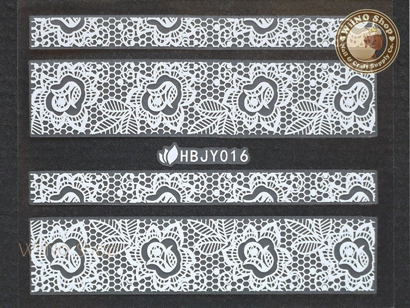 HBJY016 White Lace Nail Sticker Nail Art - 1 pc