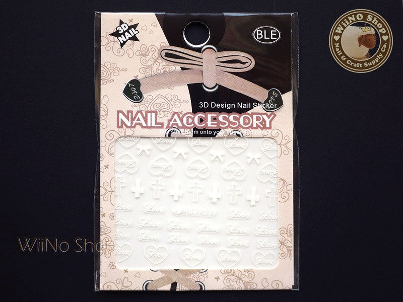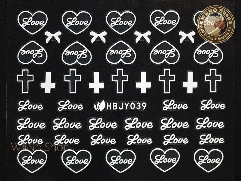 HBJY039 White Love Cross Nail Sticker Nail Art - 1 pc