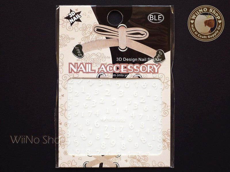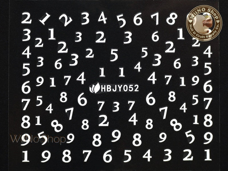 HBJY052 White Number Nail Sticker Nail Art - 1 pc