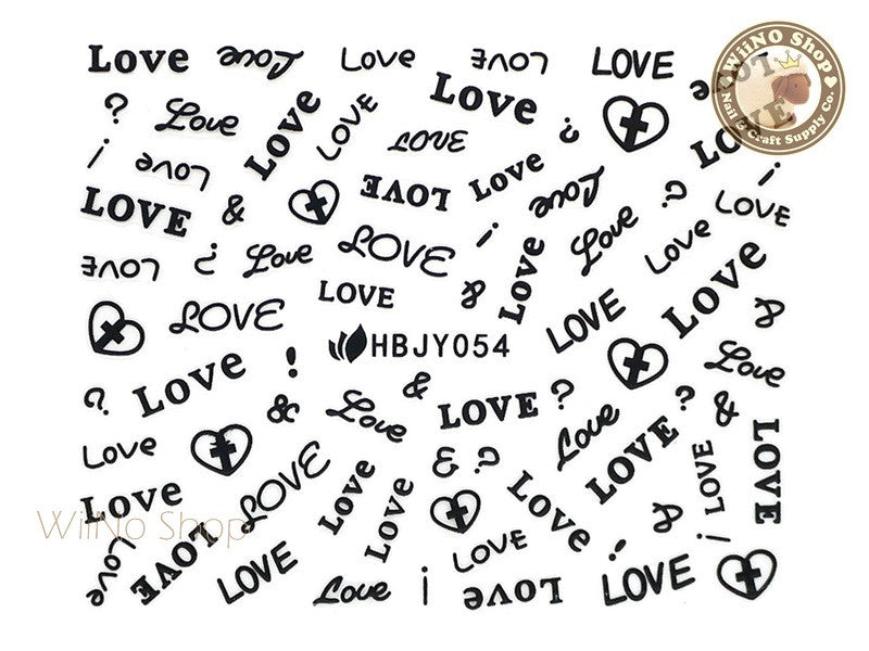 HBJY054 Black Love Nail Sticker Nail Art - 1 pc