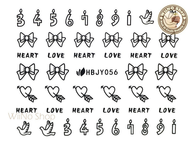 HBJY056 Black Heart and Candles Nail Sticker Nail Art - 1 pc