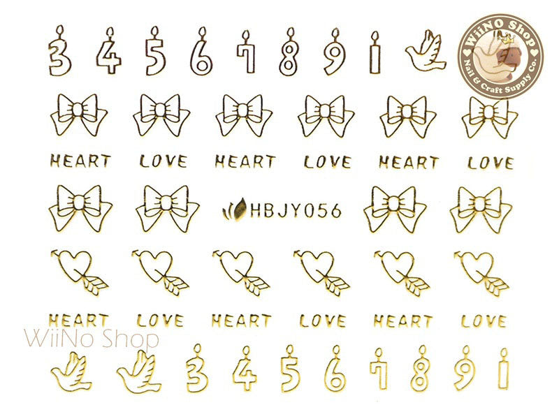 HBJY056 Gold Heart and Candles Nail Sticker Nail Art - 1 pc