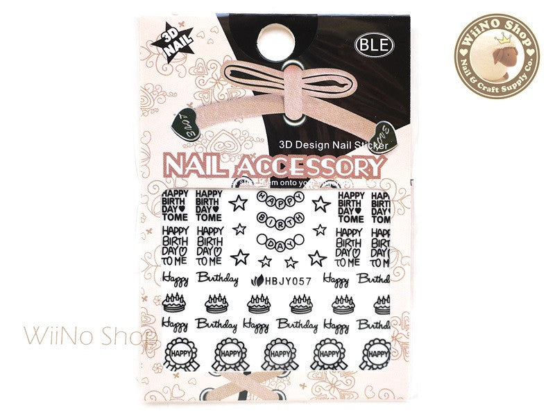 HBJY057 Black Happy Birthday Nail Sticker Nail Art - 1 pc
