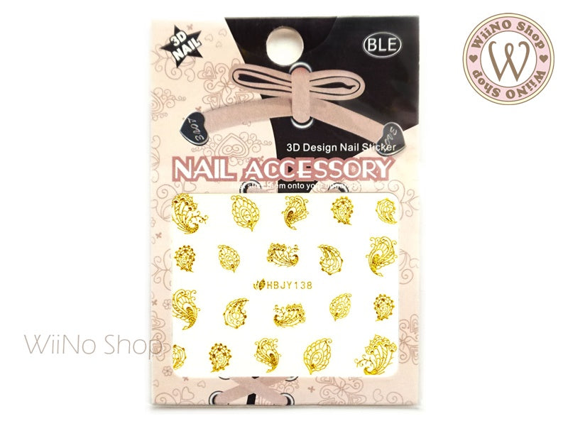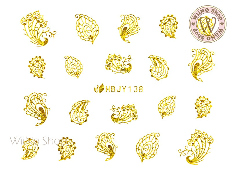 HBJY138 Gold Peacock Feather Nail Art Sticker - 1 pc