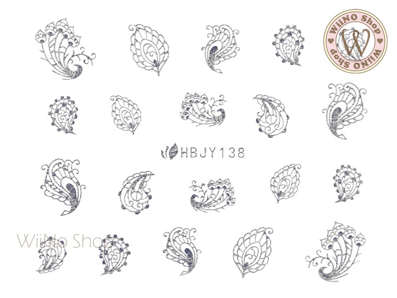 HBJY138 Silver Peacock Feather Nail Art Sticker - 1 pc