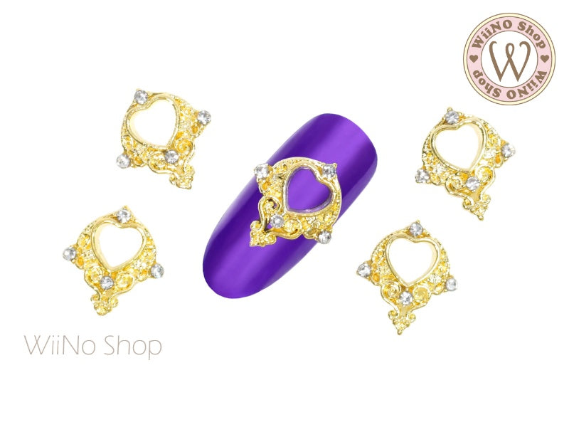 Heart Baroque Frame Nail Metal Charm - 2 pcs