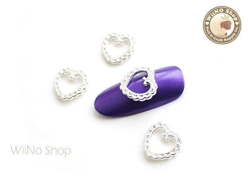 Heart Lace Frame Silver Nail Metal Charm - 2 pcs