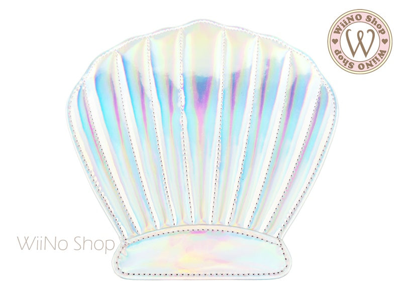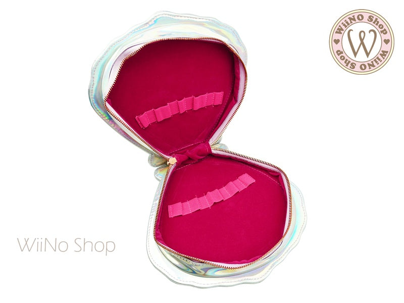 Beautiful diamond shaped cosmetics brush case features a holographic outer