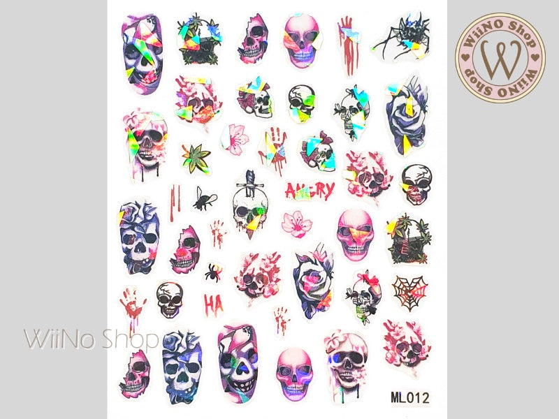 Holographic Skull Adhesive Nail Art Sticker - 1 pc (ML012)