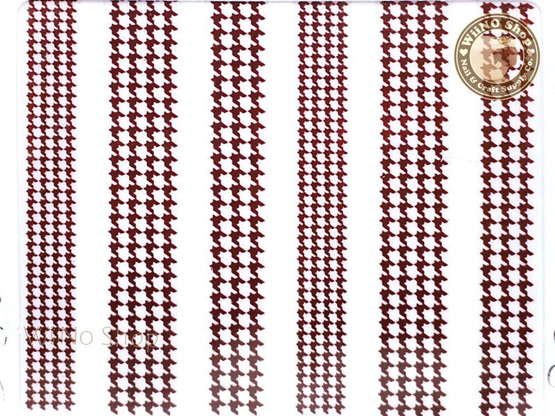 Houndstooth Pattern Brown Adhesive Nail Sticker Nail Art - 1 pc