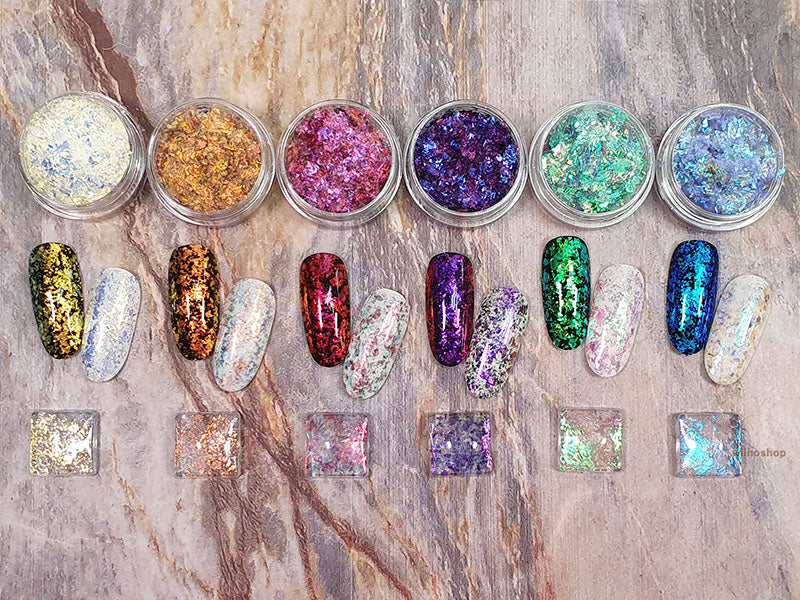 Qty : 1 color of Aurora Ice Flake Dust in clear 3 gram jar.
