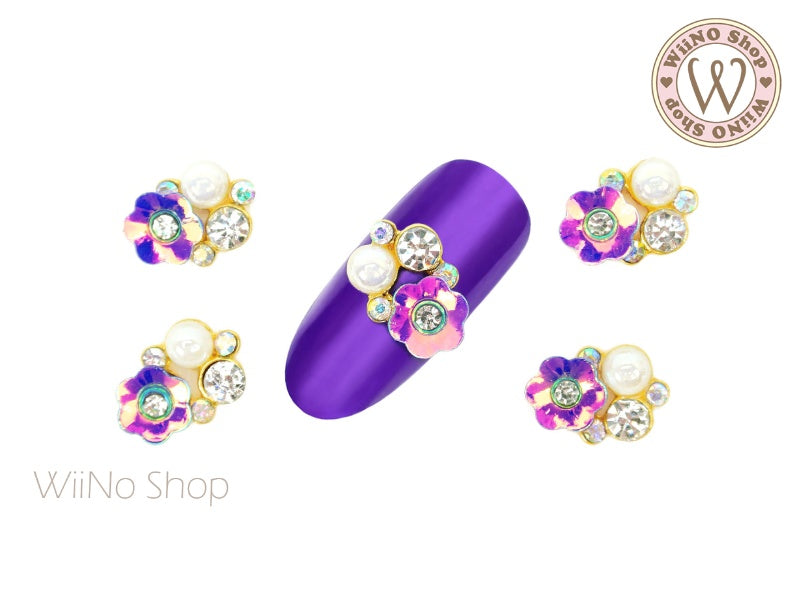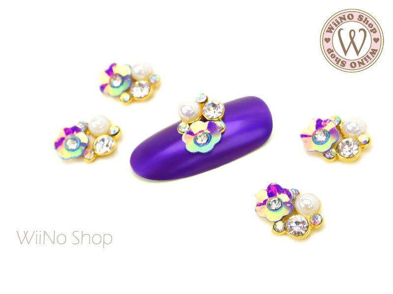 Iridescent Flower Cluster Nail Metal Charm - 2 pcs