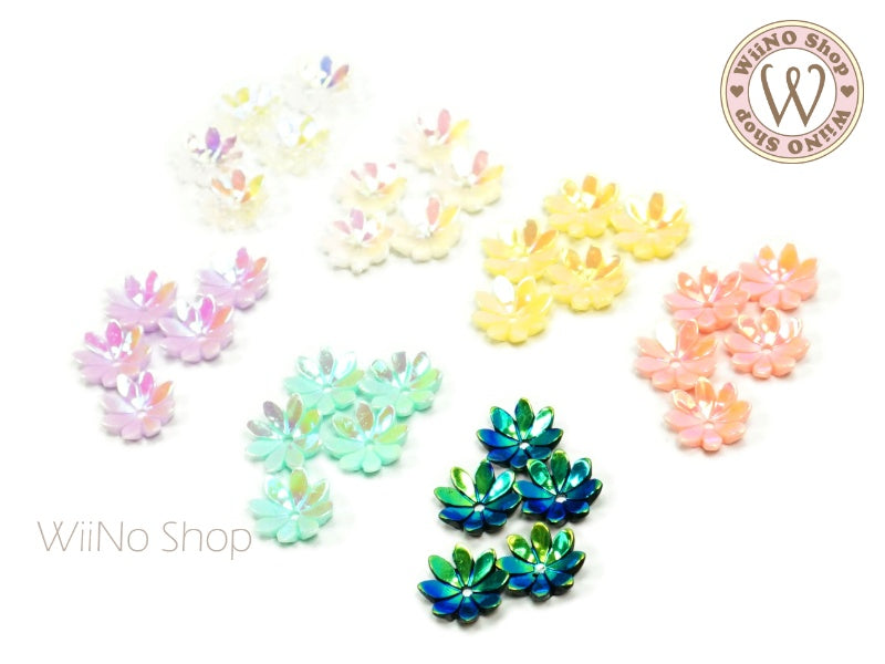 Iridescent Lotus Flower Nail Art Cabochons - 5 pcs