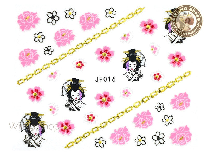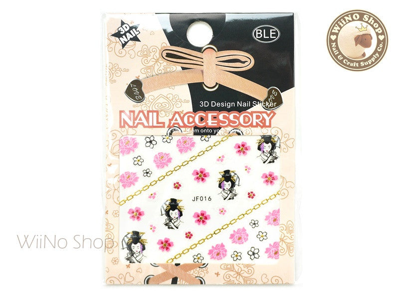 JF016G Gold Japanese Geisha Adhesive Nail Art Sticker - 1 pc