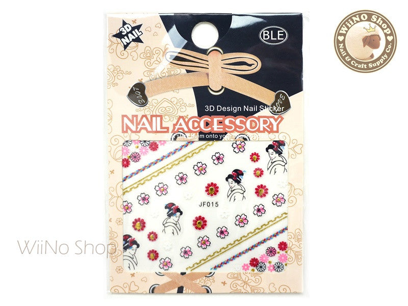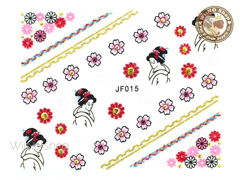 JF015G Gold Japanese Geisha Adhesive Nail Art Sticker - 1 pc