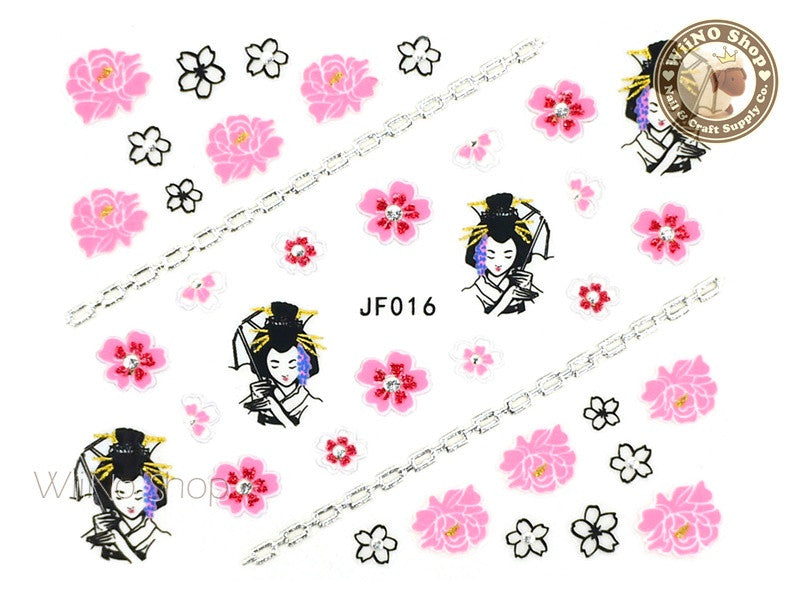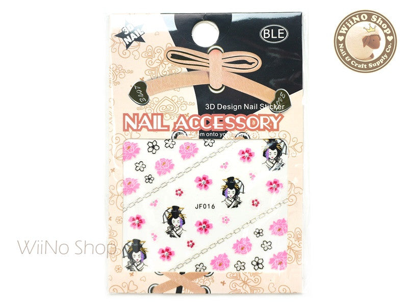 JF016S Silver Japanese Geisha Adhesive Nail Art Sticker - 1 pc