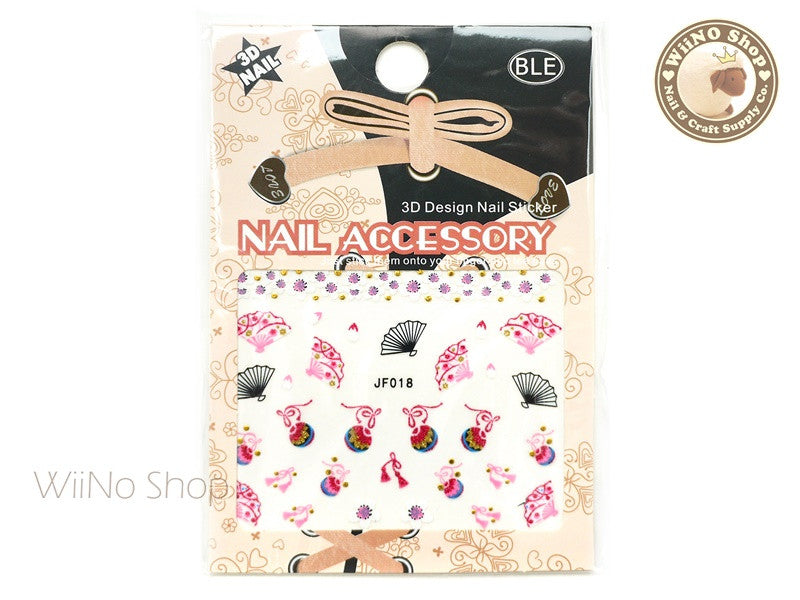 JF019G Gold Japanese Cherry Blossom Fan Adhesive Nail Art Sticker - 1 pc