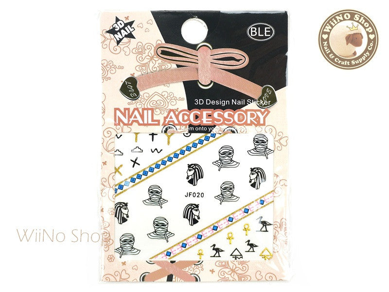 JF020G Gold Egyptian Symbols Adhesive Nail Art Sticker - 1