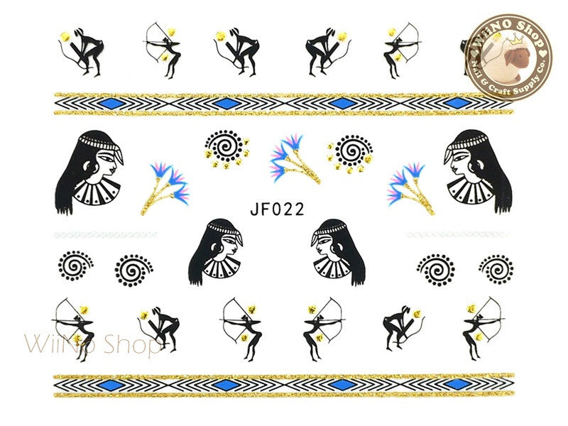 JF022G Gold Egyptian Symbols Adhesive Nail Art Sticker - 1